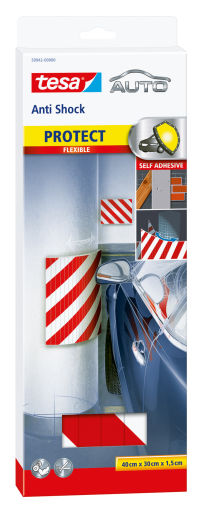 Tesa Auto Anti Shock fleksibilna zaštitna traka za stubove i zidove garaža su samolepljive crveno bele pločice za zaštitu boje automobila od udara, mogu se brzo instalirati u opasnim zonama vaše garaže, ispod nadstrešnice ili na parking mestu.