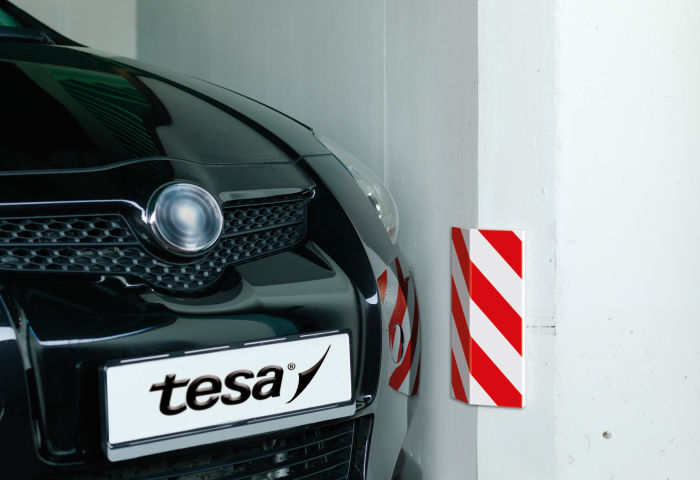 Tesa Auto Anti Shock zaštitna traka za stubove i zidove garaža su samolepljive crveno bele pločice za zaštitu boje automobila od udara, mogu se brzo instalirati u opasnim zonama vaše garaže, ispod nadstrešnice ili na parking mestu.