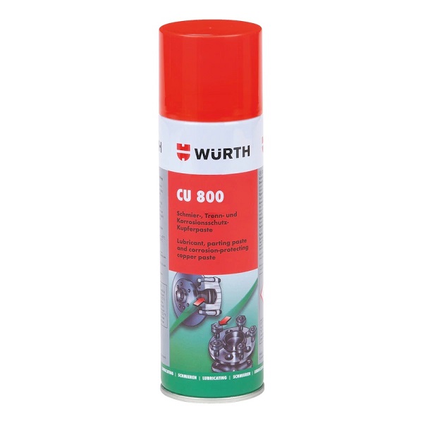 Wurth CU 800 je visoko temperaturno otporno bakarno sredstvo za podmazivanje i zaštitu metalnih površina od korozije, zaribavanja, hladnog zavarivanja i habanja. Ovo sredstvo je otporno na vodu, baze, kiseline i temperaturno je otporno u opsegu od -20 stepeni do +1200 stepeni. Vrlo dobro prijanja na površine koje se podmazuju, kao što su kočnice, montažni delovi, polovi akumulatora, ležajevi, pregibi, klizne površine.