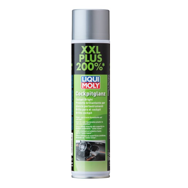 Liqui Moly kokpit sprej omogućava da izbledela i oštećena plastika izgleda kao nova. Plastične komponente dobijaju prvobitni izgled. Sprečava dosadna krckanja ili škripanja. Sredstvo ne sadrži masti i antistatično je i odbija prašinu. Dobro podmazuje gumu i plastiku impregnira i izoluje - univerzalna primena. Upotreba: protiv krckanja i škripanja plastike i lepljenja kaiševa za vezivanje (poprskati kaiš sa obe strane). Za izbledele plastične površine kao što su branici i spojleri itd. Za kompletnu unutrašnju negu automobila.