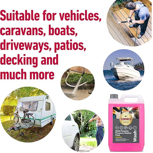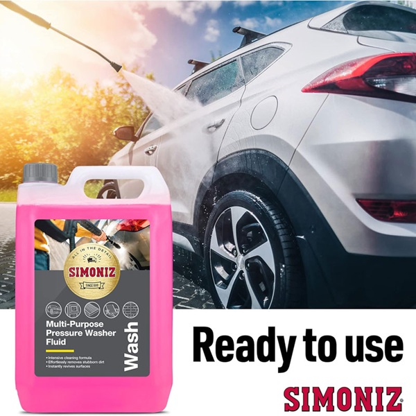 Simoniz višenamenska tečnost za pranje pod pritiskom sadrži aktivne sastojke koji brzo prodiru i uklanjaju prljavštinu i nečistoće. Specijalno razvijen za karoseriju automobila, može se bezbedno koristiti i na nizu drugih tvrdih površina, uključujući beton, asfalt i drvo – idealno za ciljano, snažno čišćenje tamo gde je najpotrebnije. Laboratorijski razvijena formula probija prljavštinu mnogo brže od same vode. Bezbedan za upotrebu u svim vrstama perača pod pritiskom, tako da efikasno čisti bez obzira koja vrsta perača je u pitanju.