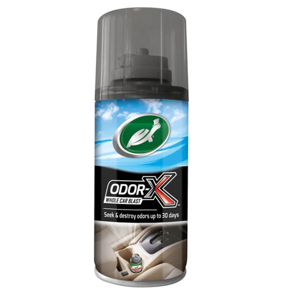 Turtle Wax Odor-X Car Blast eliminiše neprijatne mirise u automobilu. Osvežava i čisti unutrašnjost automobila ne ostavljajući tragove. Ostavlja miris Kariba ili Novog automobila i duže od 30 dana. Proizvod je za jednokratnu upotrebu.