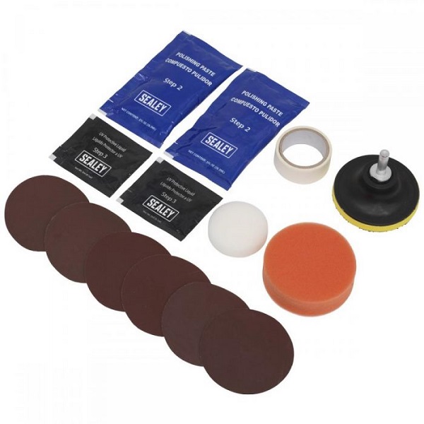 Trostepeni komplet za obnavljanje prednjih svetala dizajniran za uklanjanje najgorih slučajeva propadanja, žućenja, oksidacije i ogrebotina prednjih svetala. Uključuje sve što je potrebno za poliranje zamućenih sočiva. Ostvarite odlične rezultate na većini plastičnih sočiva, kao što su zadnja svetla, prikolice, prozori čamaca, štitnici za kacige, vetrobranska stakla za motocikle, motorne sanke i drugo. Poboljšava vidljivost i bezbednost. Jedan komplet je namenjen vraćanju dva sočiva prednjih svetala.