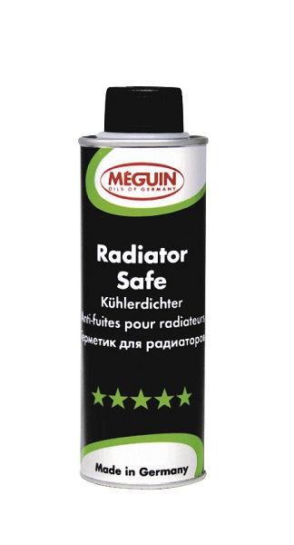Meguin Radiator Safe je disperzija za zaptivanje curenja u sistemima za hlađenje motornih vozila. Radiator Safe pouzdano zaptiva pukotine širine ljudske kose i mala curenja. Disperzija čvrstih materijala je stabilizovana u tečnom nosaču. Koristi se za zaptivanje malih curenja u rashladnom sistemu putničkih i komercijalnih motornih vozila, autobusa i dvotaktnih motora. Takođe je pogodan i za rashladne sisteme sa filterima.