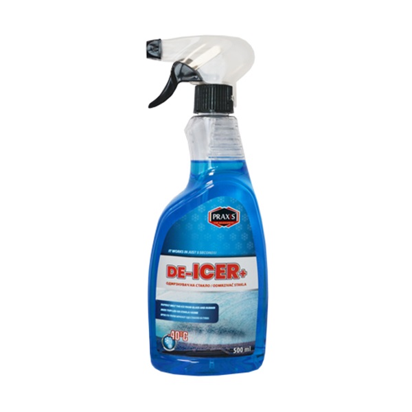 Praxis odleđivač stakala sa pumpicom uklanja led i inje brzo i efikasno i sa vrlo zamrznutih stakala. Štiti od zamrzavanja. Ne oštećuje površine. Prijatan miris. Boja: plava.