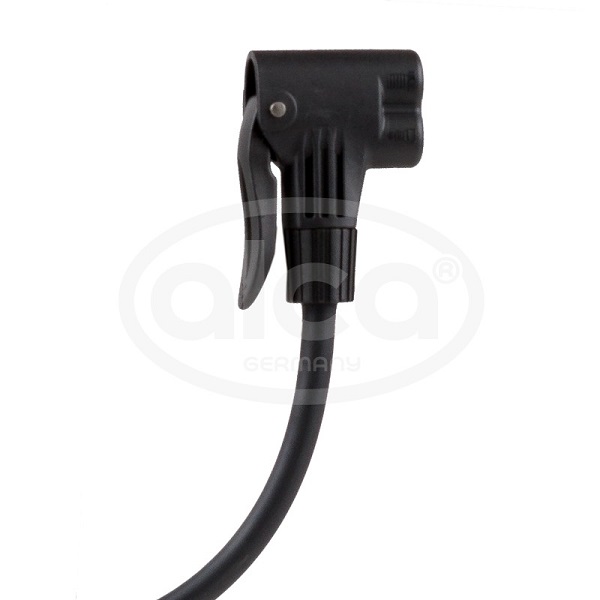 Alca Ručna pumpa za pumpanje guma, za vozila, bicikle, lopte itd. Pritisak 80 psi, čelični cilindar. Sadrži 50 cm creva za vazduh i 3 specijalna adaptera. NOVO - multi-ventilski priključak za ventile vozila i bicikala (takođe i za francuski ventil, ventil za trkačke bicikle, Presta ventil). Dimenzije: 600 x 40 x 55 mm.