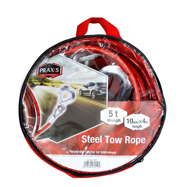 Čelična sajla sa kukama za vuču do 5 tona. Debljina sajle 10 mm. Dužina 4 m.