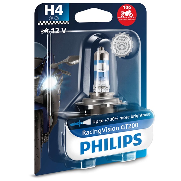 Philips-ovo najsavremenije osvetljenje je poznato u automobilskoj industriji više od jednog veka. Philips proizvodi sa oznakom kvaliteta originalne opreme dizajnirani su i razvijeni pod rigoroznim procesima kontrole kvaliteta (uključujući primenljive ISO standarde), što obezbeđuje visoke standarde proizvodnje. Sijalice za motocikle Philips RacingVision GT200 su kompatibilne sa modelima motocikala najvećih brendova.