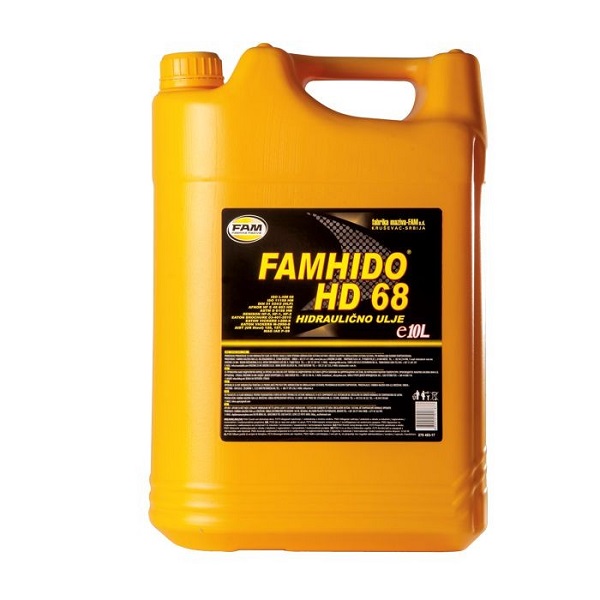 Famhido HD 68 hidraulično ulje mineralne osnove sa aditivima protiv habanja i korozije. Primenjuje se kao fluid za prenos snage i kretanja u svim hidrauličnim sistema pri normalnim radnim temperaturama. Vrši podmazivanje pokretnih elemenata: krilnih, aksijalnih, klipnih i zupčastih pumpi. Ne utiče negativno na delove od obojenih metala, ne vrši razaranje, rastvaranje i bubrenje uobičajenih zaptivnih materijala od gume i plastike. Primenjuju se i za podmazivanje malih i slabo opterećenih zatvorenih zupčastih prenosnika.